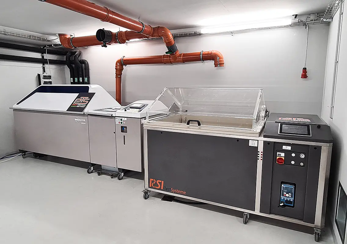 Tests with liquids, lubricants or aggressive media to ensure function and service life.