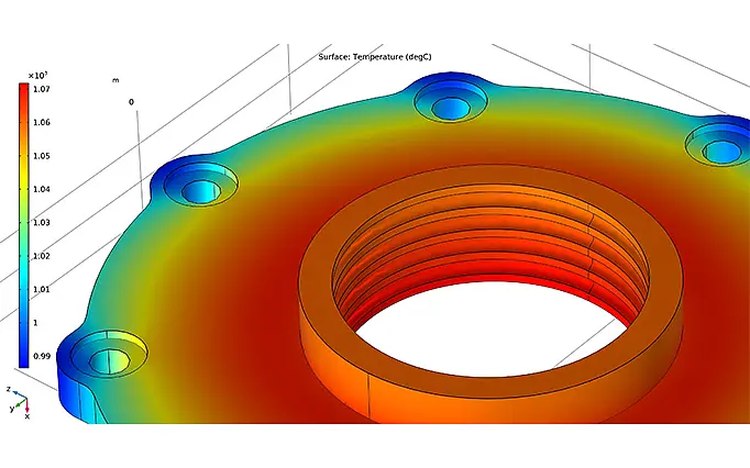 We calculate both steady-state and transient temperature distributions in individual components and complex assemblies. Based on these results, we couple heat flow and mechanical stresses in order to reliably predict temperature-induced deformations, residual stresses and service life influences. In this way, we support you in safely designing thermally stressed constructions, avoiding hot spots and sustainably increasing the performance of your product.